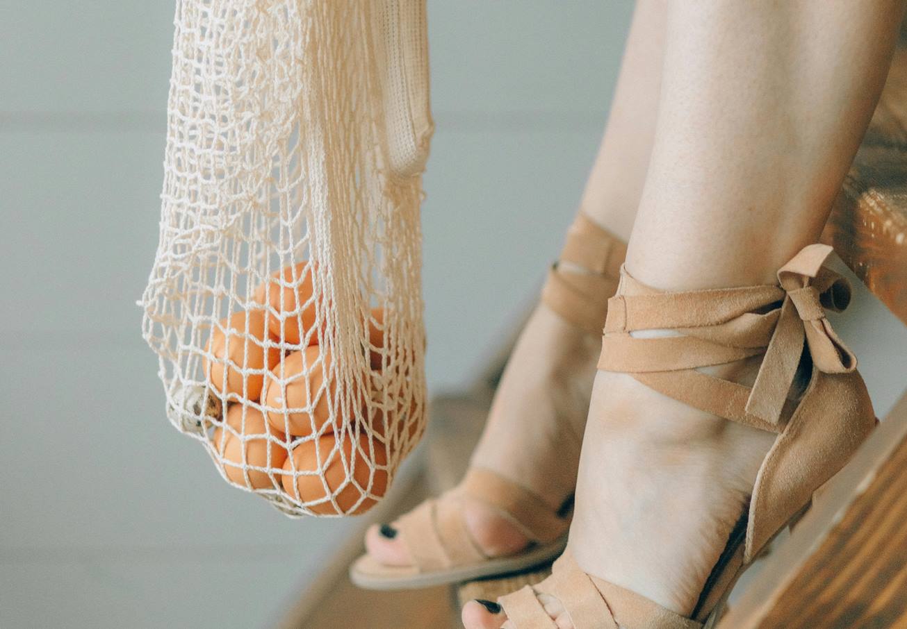 Plateaus, Wedges oder Sandalen mit dicker Sohle eignen sich am besten. Vermeiden Sie Sandalen in typisch leuchtenden, sommerlichen Farben. Entscheiden Sie sich stattdessen für gedeckte Töne: Schwarz, Beige, Braun oder Khaki.